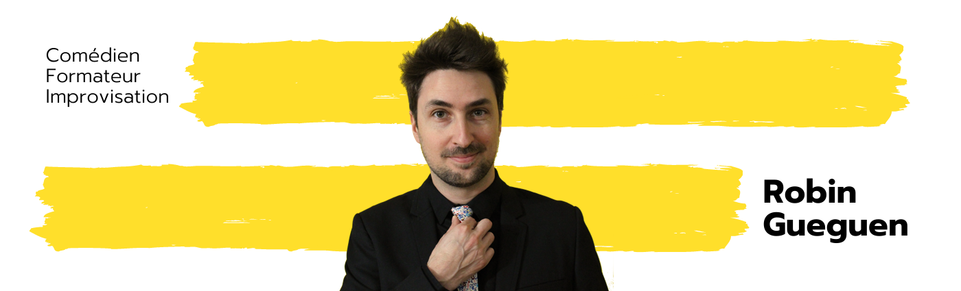 Je m’appelle Robin Gueguen, je suis comédien, formateur, mais aussi ingénieur, docteur en mathématiques, diplômé de l’école Polytechnique et de Sorbonne Université. J’aide les salariés d’entreprises et les particuliers à développer leurs compétences oratoires, leur agilité comportementale et leurs liens avec leurs équipes grâce aux outils de l’improvisation théâtrale. Et oui, improviser ça ne s’improvise pas.